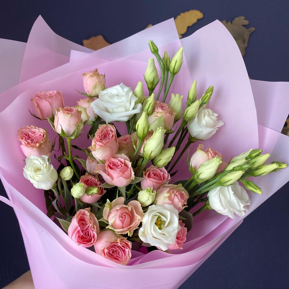 Роза кустовая – 3 шт.Лизиантус – 4 шт.