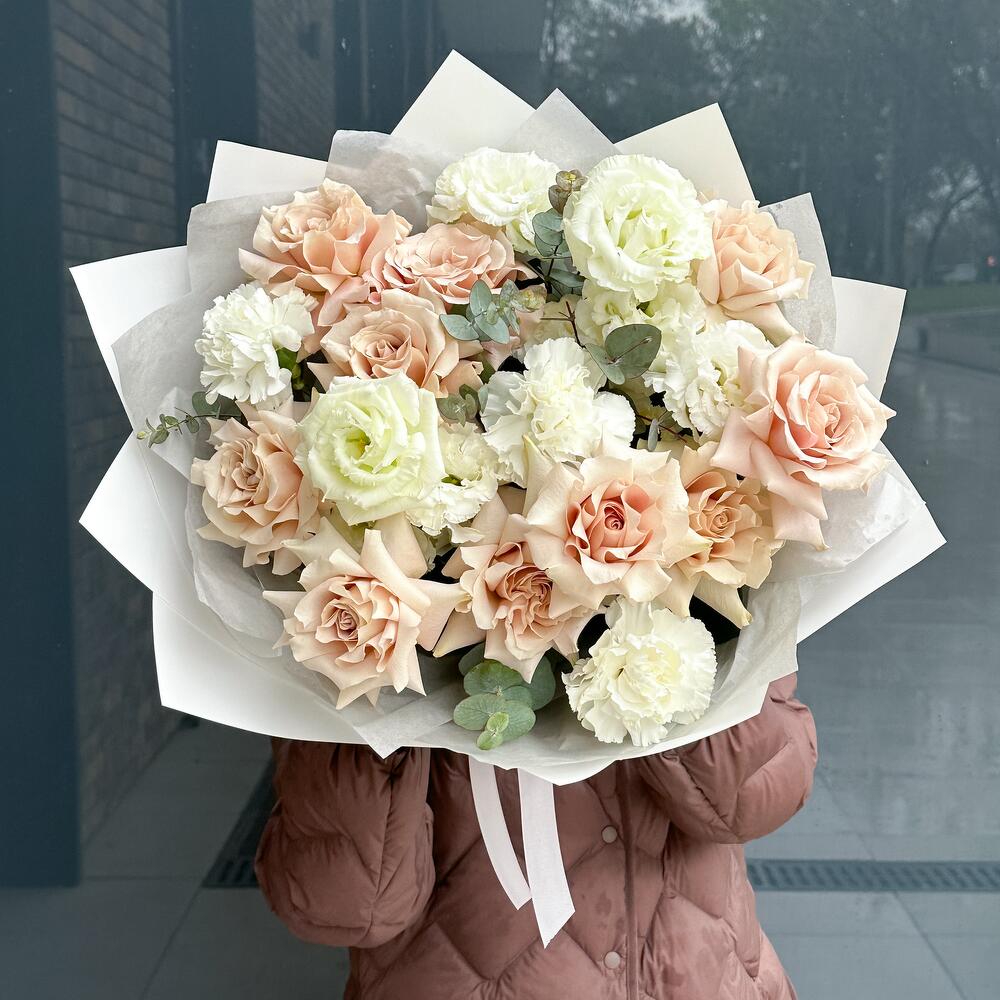 Категорий: Гвоздики, Диантус, Лизиантусы, Розы, Эвкалипт, Эустома