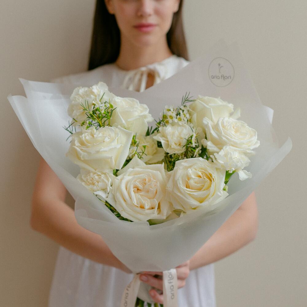 Белоснежный букет из кустовых роз