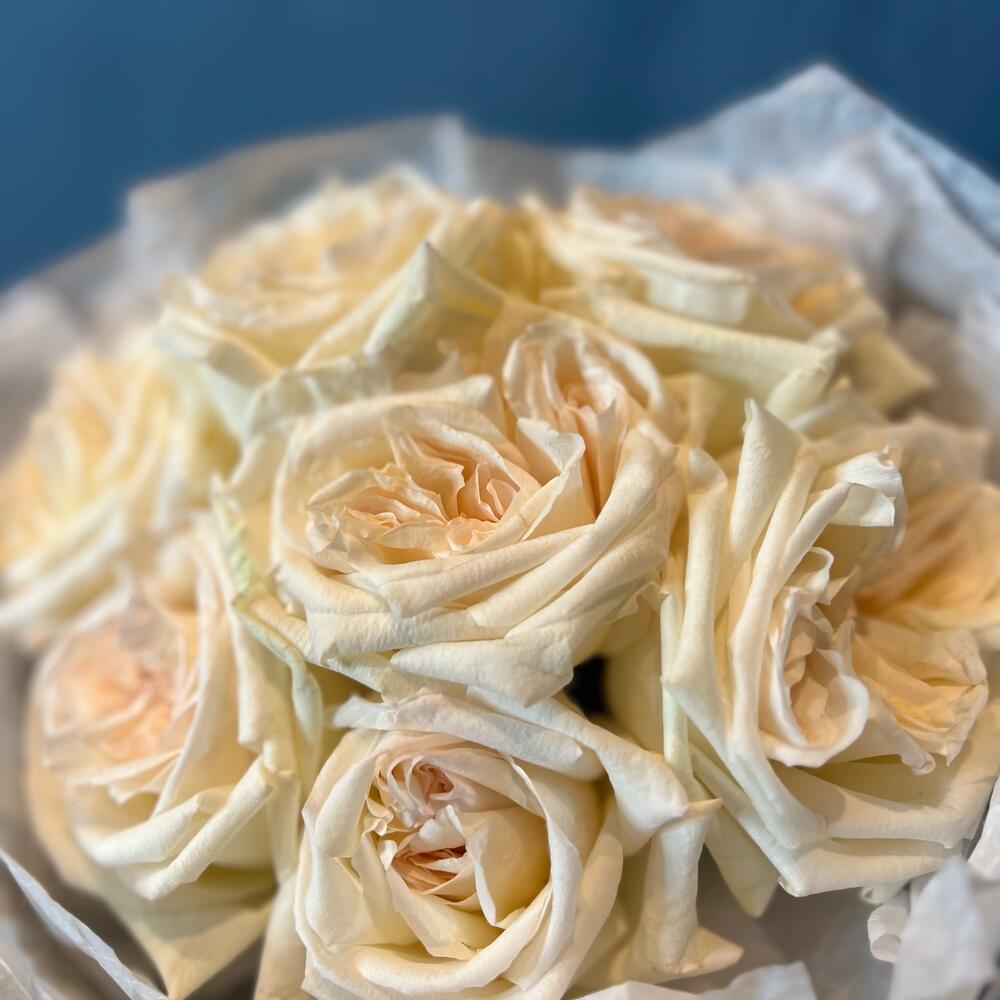 Лента атласная – 1 шт.Тишью – 2 шт.Фоамиран – 1 шт.роза white o’hara – 7 шт.
