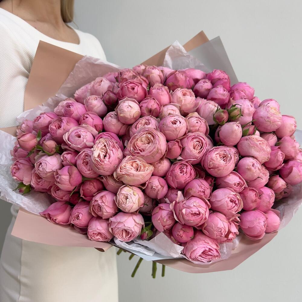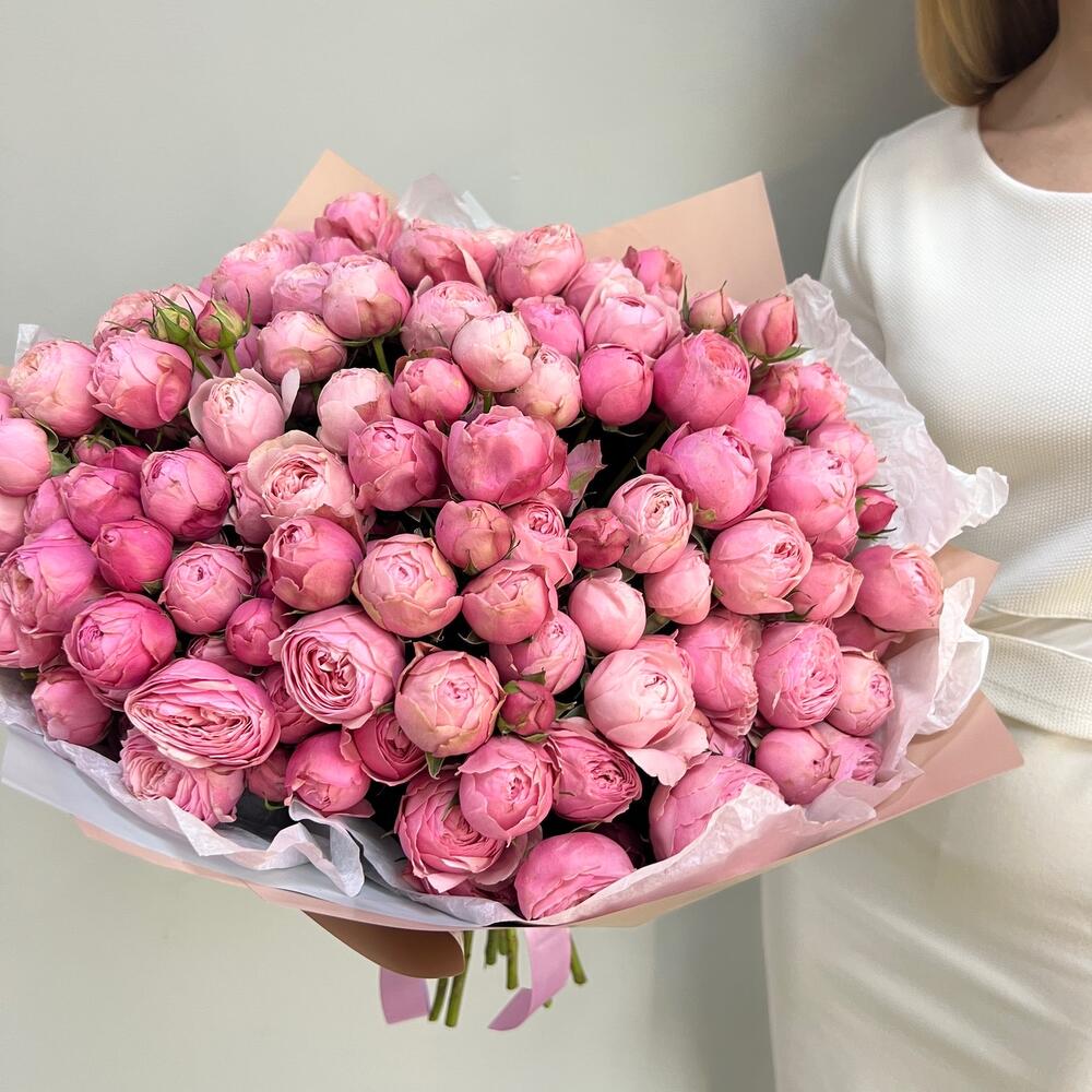 Упаковка дизайнерская – 4 шт.Пионовидная кустовая роза – 41 шт.Тишью белое – 4 шт.