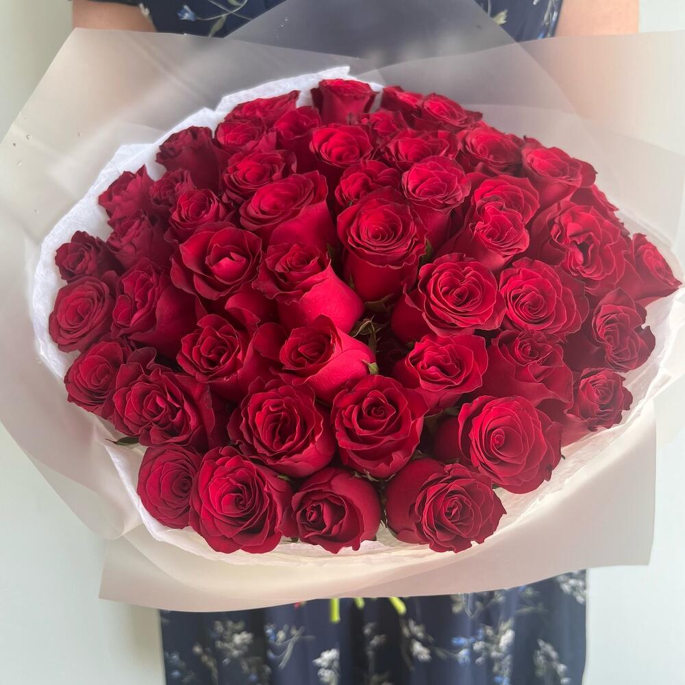 Букет 51 красная роза (Кения) в стильной упаковке