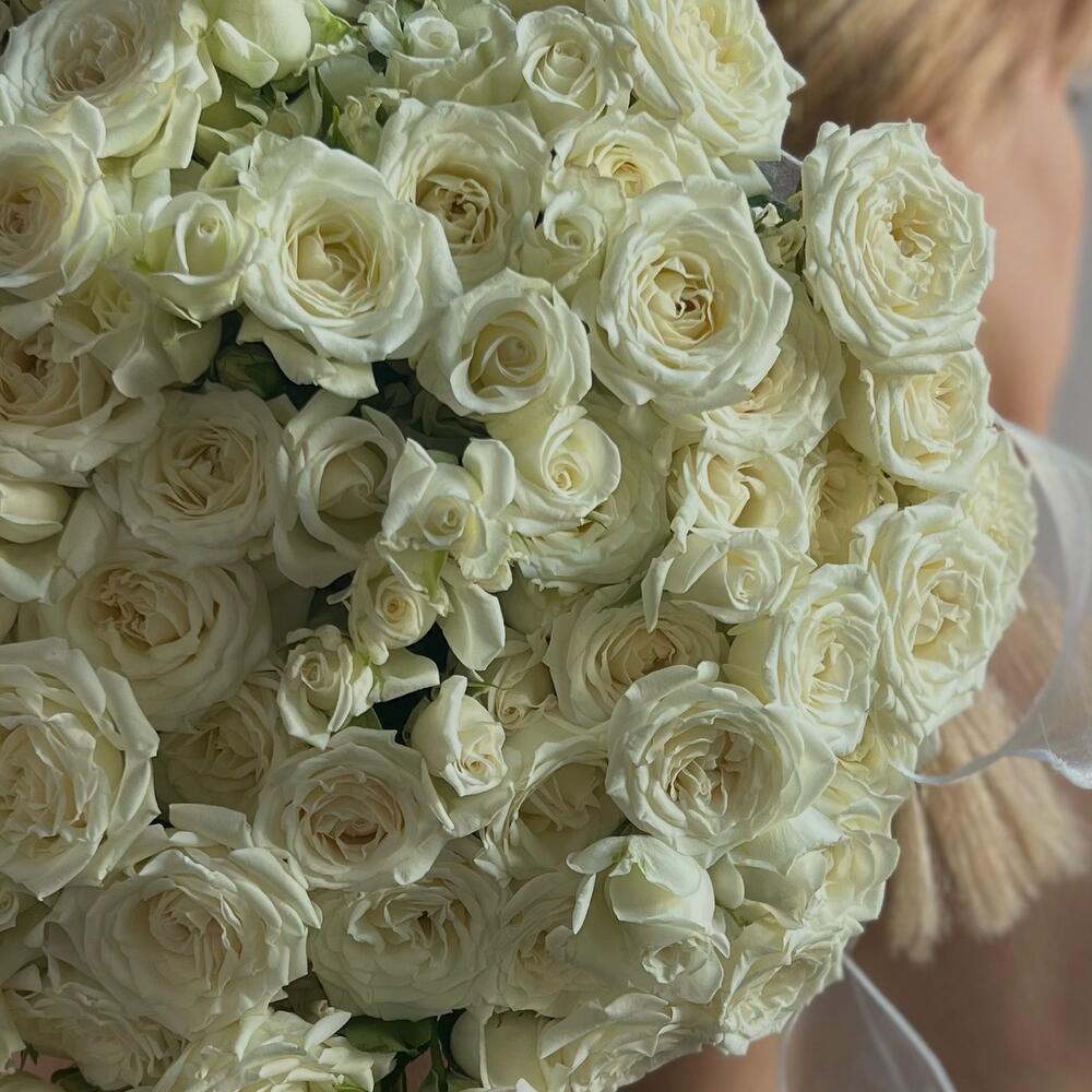 Атласная лента – 1 шт.Кустовая пионовидная роза – 25 шт.