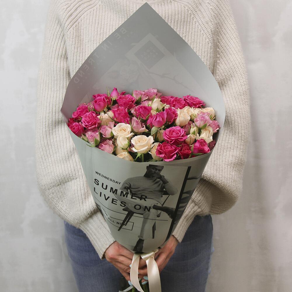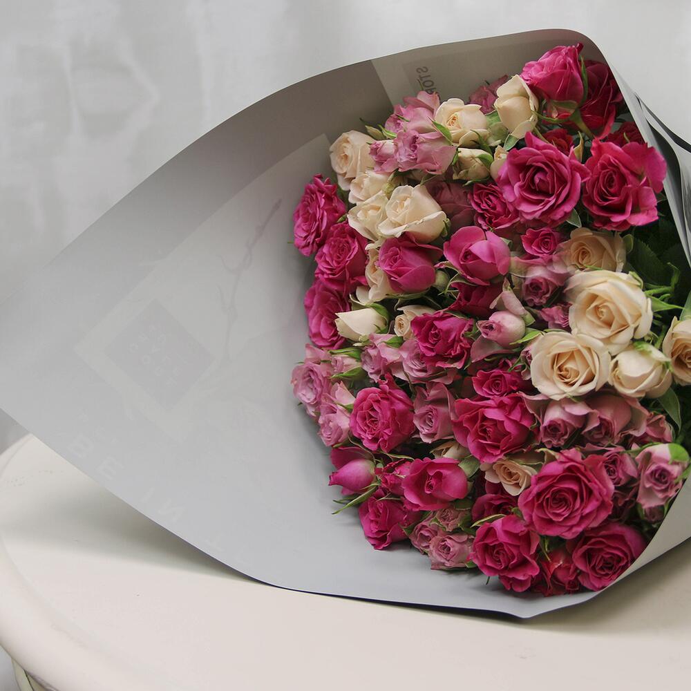 кустовая роза 60-70 см – 15 шт.Пленка – 1 шт.Лента – 1 шт.