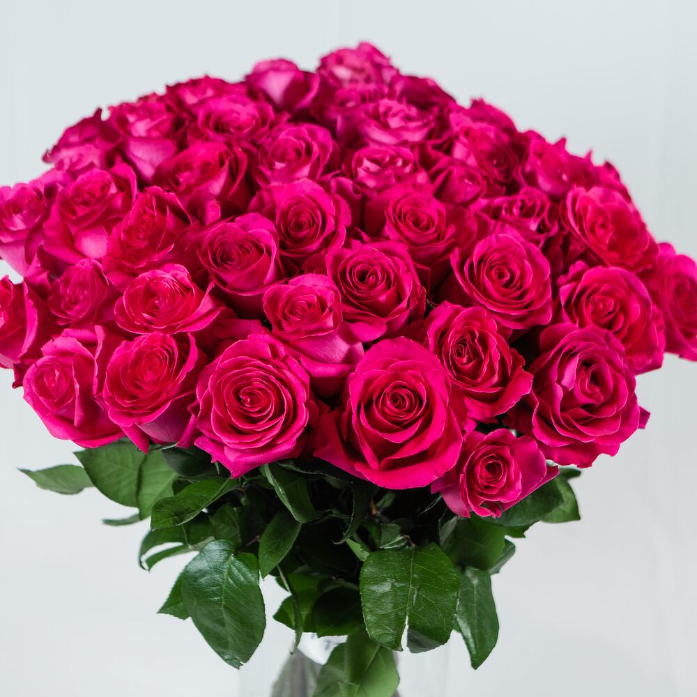 Роза эквадор розовая – 101 шт.Пленка прозрачная – 1 шт.Лента атласная – 1 шт.