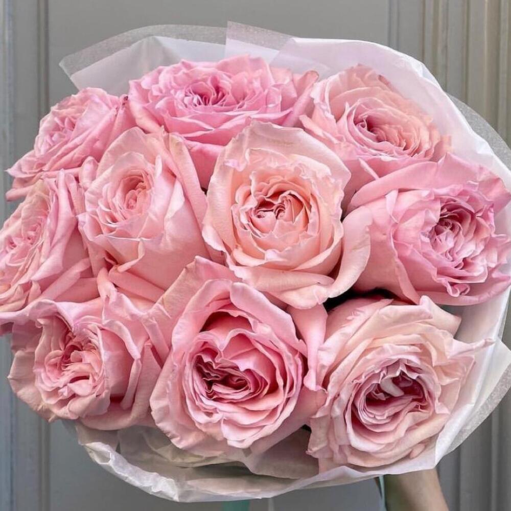 Букет из 9 розовых роз. Букет 387 ALMOND ROSES