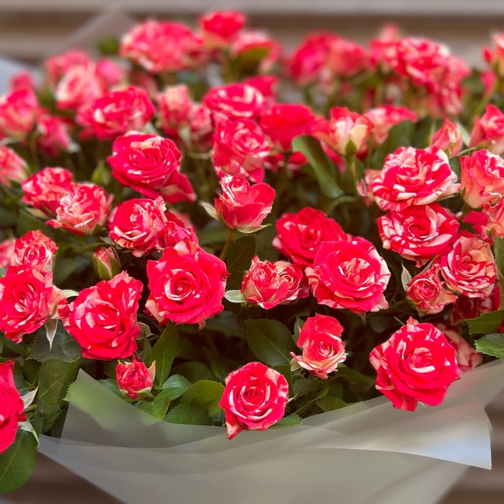 Лента – 2 шт.Пленка матовая – 3 шт.фаервокс роза кустовая – 15 шт.