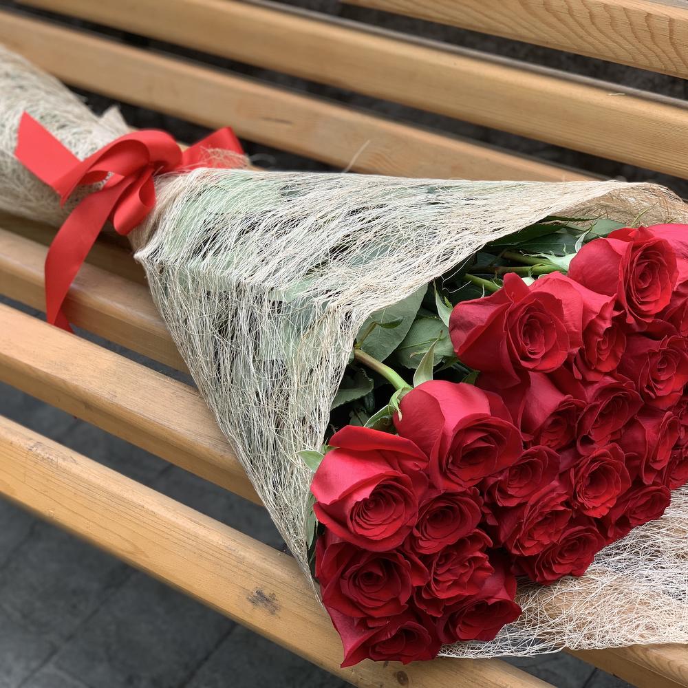 Букет высоких метровых роз стильно оформленный в элитную упаковку сизаль.