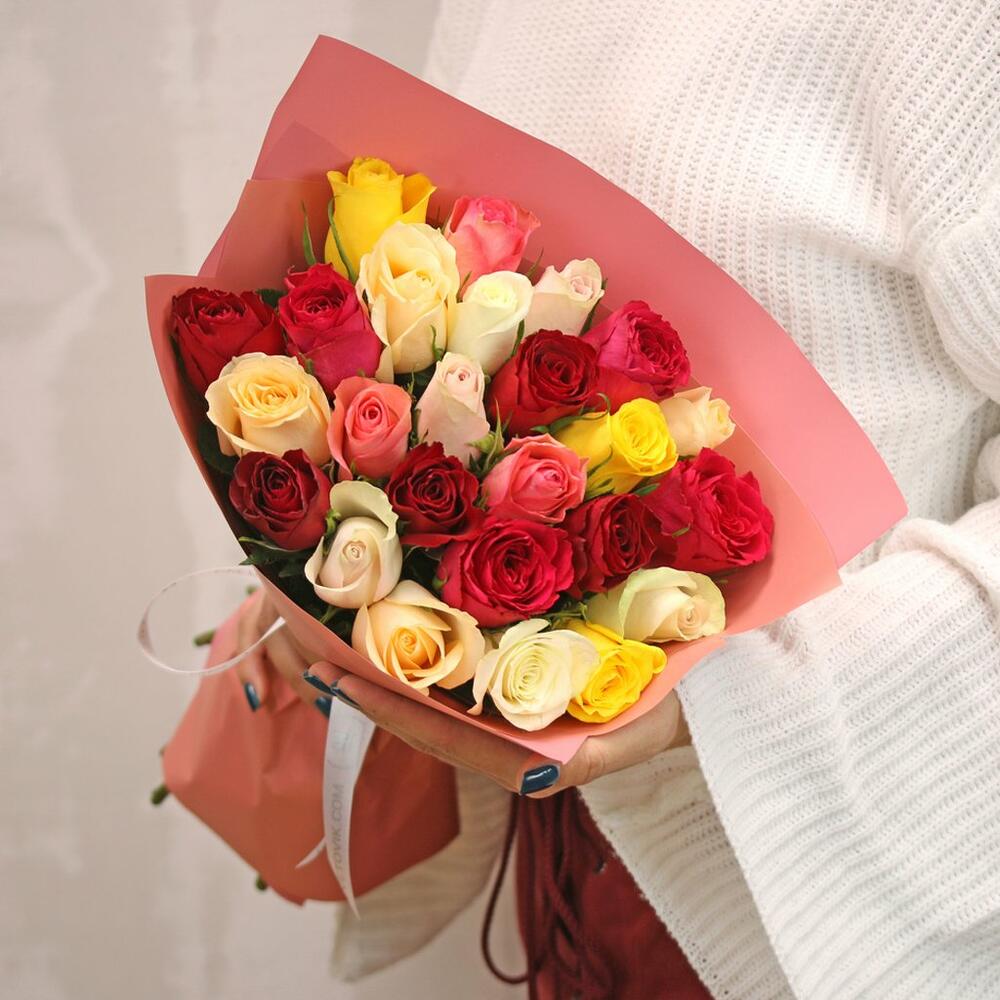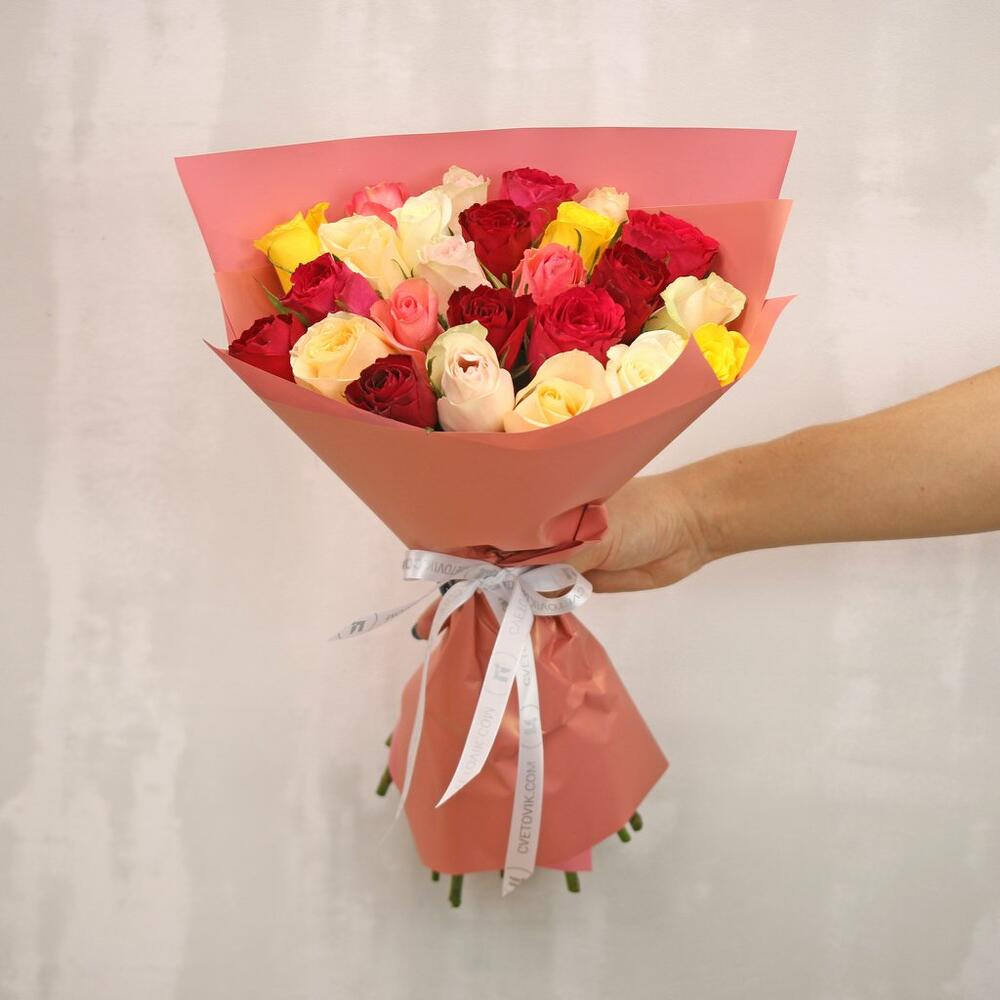 Букет из 25 роз микс 35-40 см (Кения) в упаковке