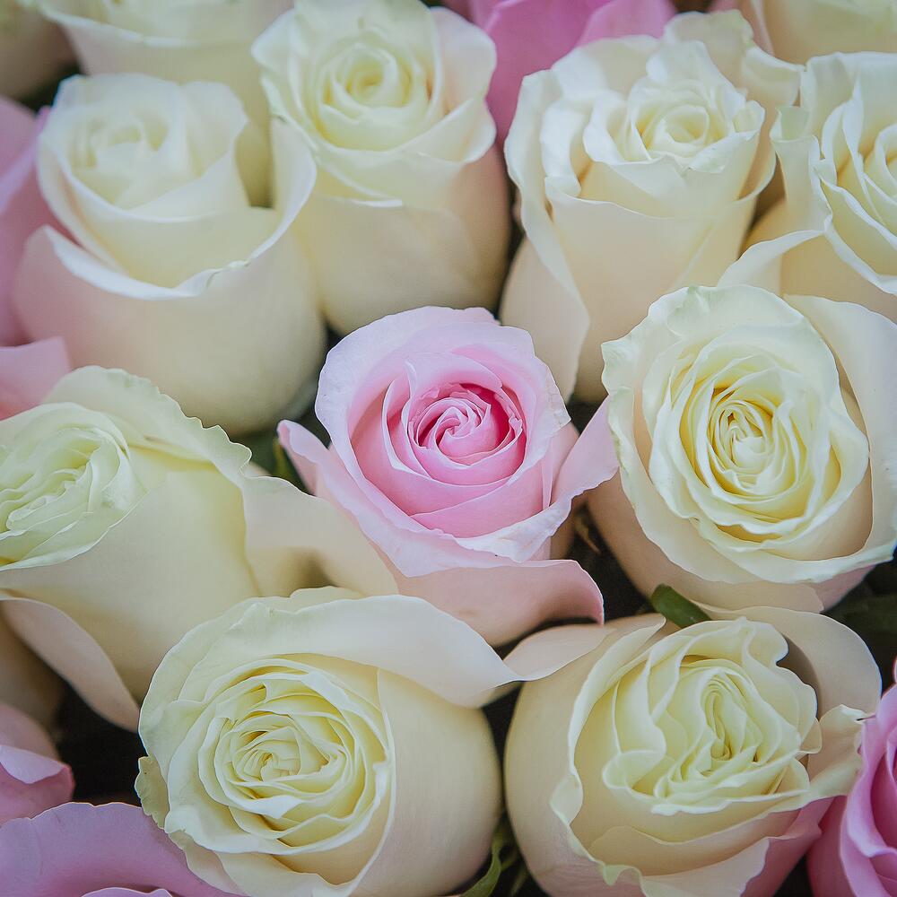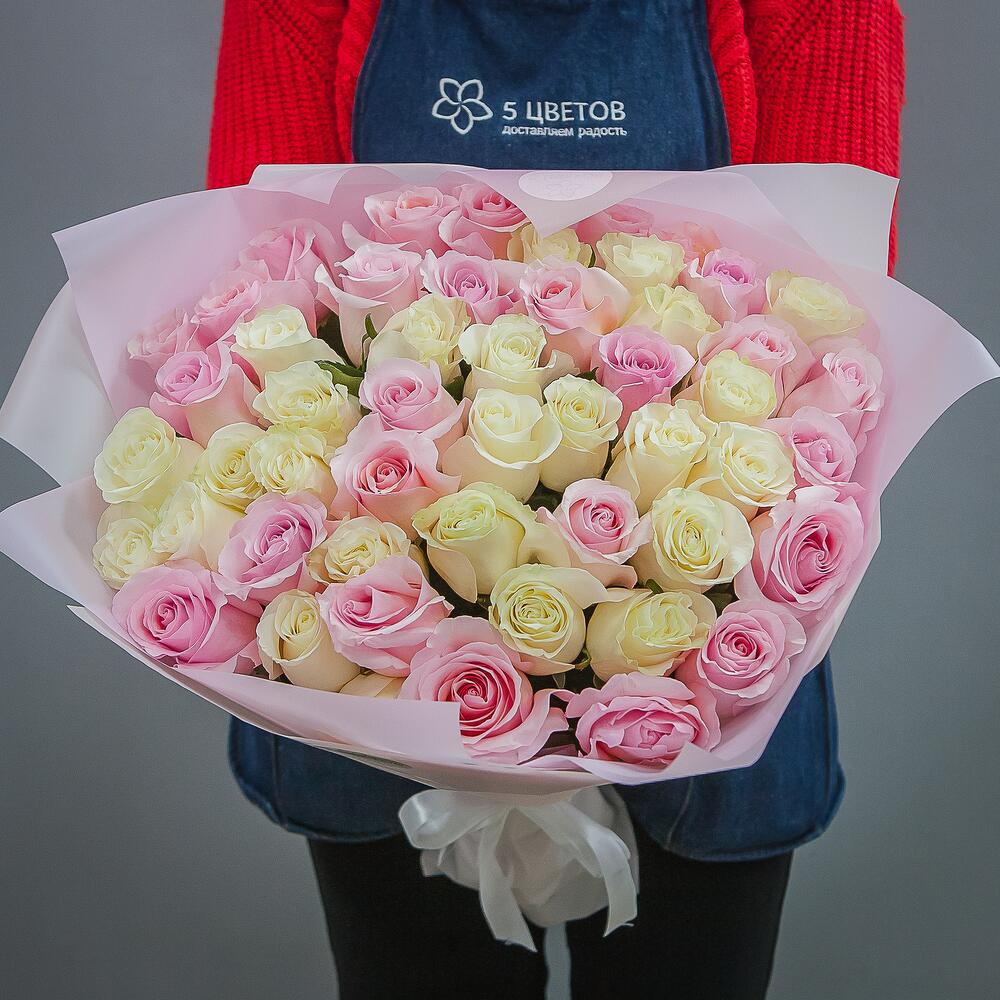 Букет из 51 белой и розовой розы