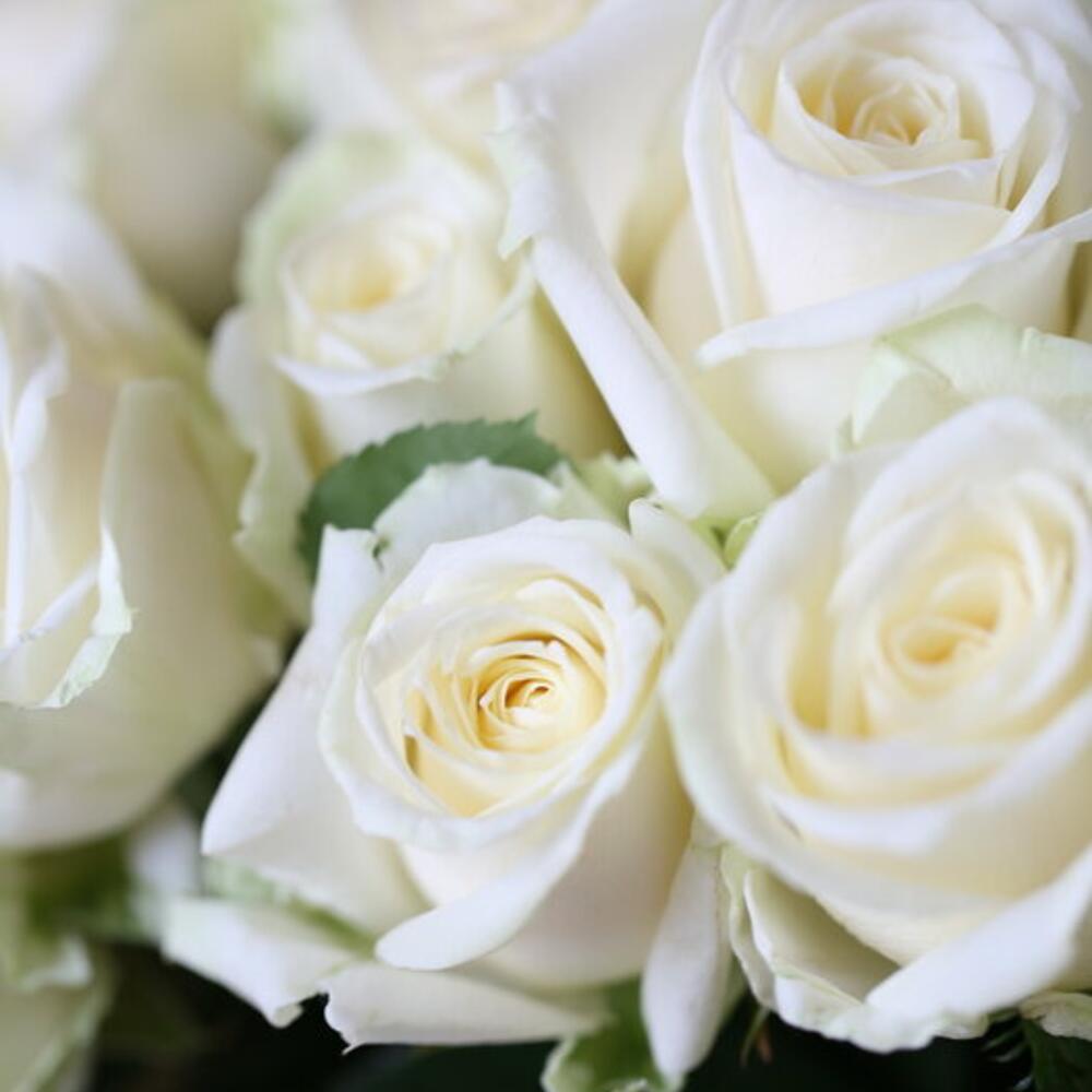 белая роза 55 см – 51 шт.Лента – 1 шт.