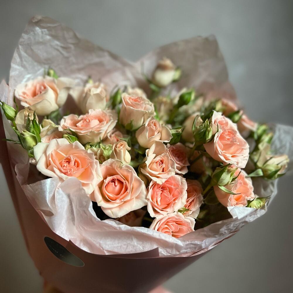 Кустовая роза – 7 шт.декоративная упаковка – 1 шт.Атласная лента – 1 шт.