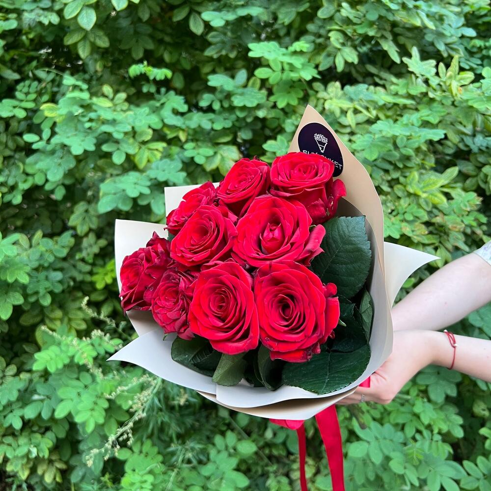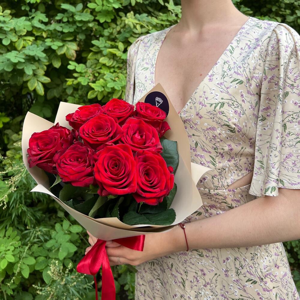 красная роза red naomi – 9 шт.пленка цветная – 2 шт.Лента атласная – 1 шт.
