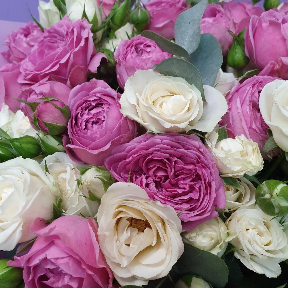 Категории: Кустовые розы, Пионовидные розы, Розы, Эвкалипт