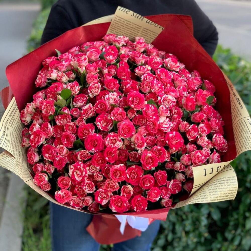 Роза кустовая Фаерфокс – 51 шт.Упаковка дизайнерская – 1 шт.Лента атласная – 1 шт.
