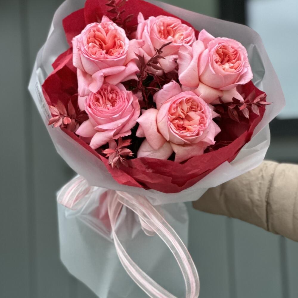 Букет из пионовидной розы и эвкалипт