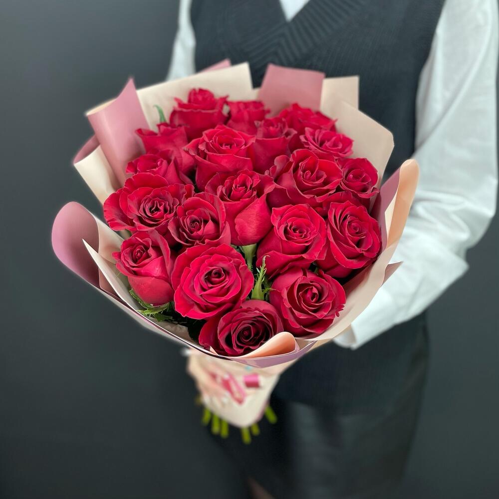 Роза эквадор 55 см – 19 шт.Дизайнерская упаковка – 3 шт.