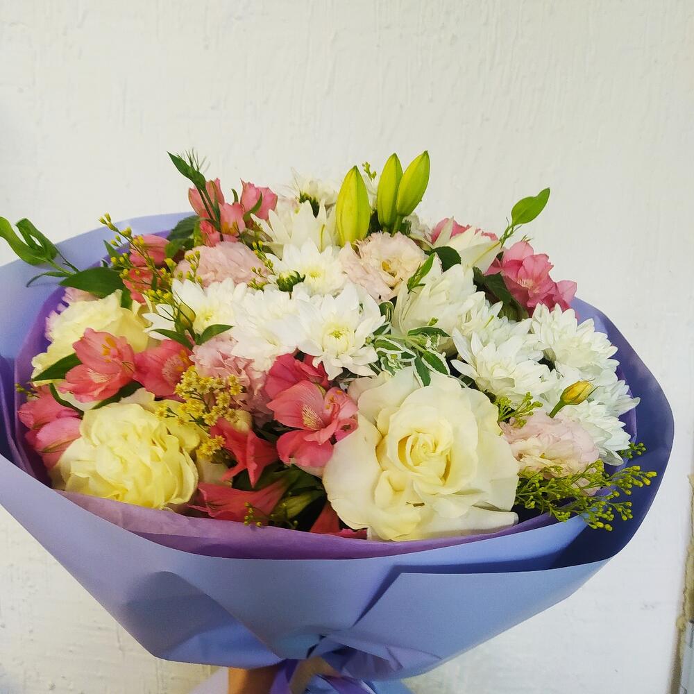 Категории: Альстромерии, Лизиантусы, Розы, Хризантемы