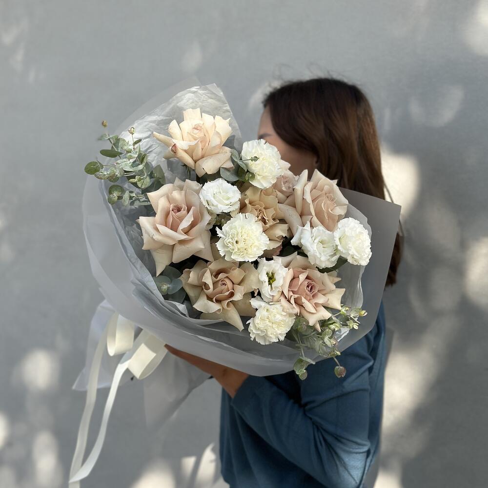 Гвоздики, Кустовые розы, Лизиантусы, Пионовидные розы, Розы