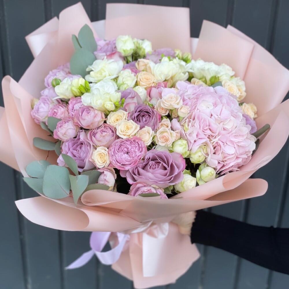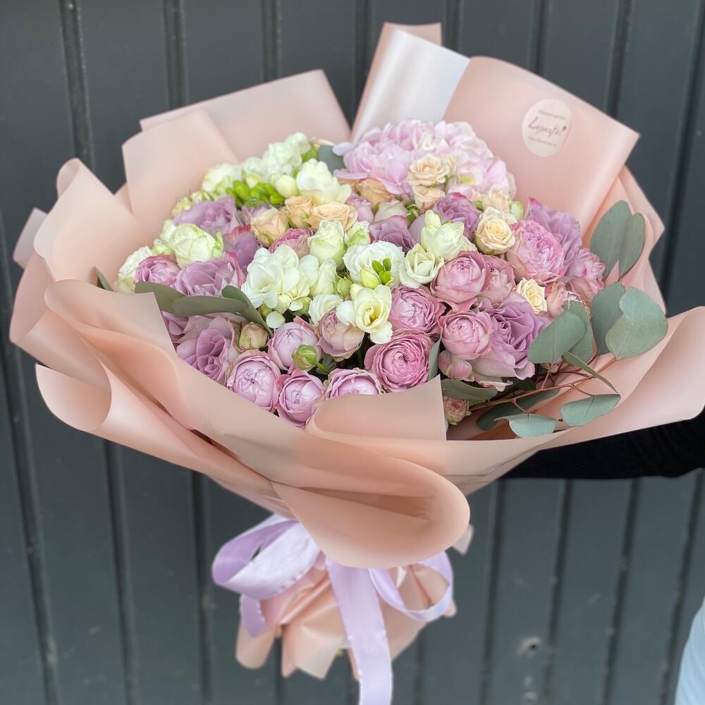 Гвоздики, Кустовые розы, Лизиантусы, Пионовидные розы, Розы