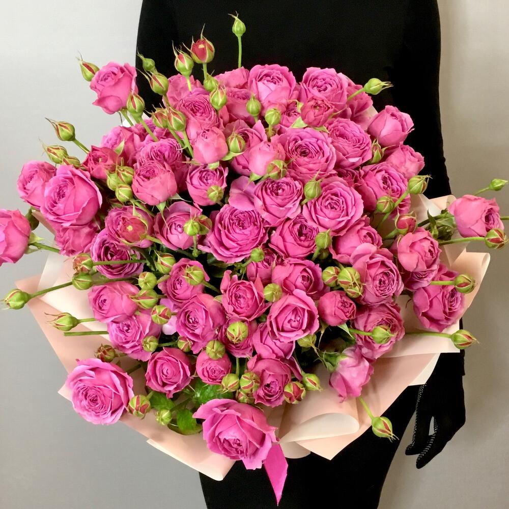 Лента атласная – 1 шт.пленка перламутровая – 2 шт.пионовидная кустовая роза баблз – 15 шт.