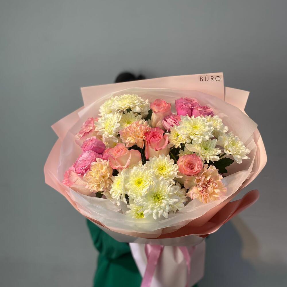 Альстромерии, Кустовые розы, Лизиантусы, Пионовидные розы, Розы, Ромашки