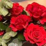 Букет с ароматными розами и эвкалиптом