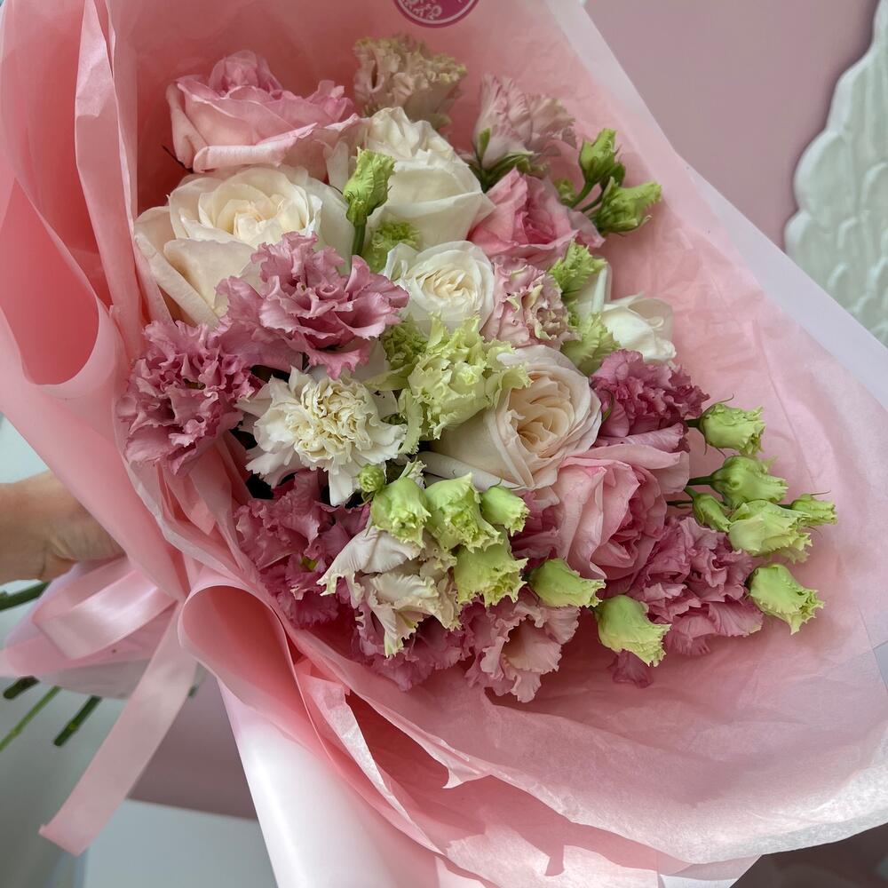 Категории: Гвоздики, Лизиантусы, Пионовидные розы, Розы