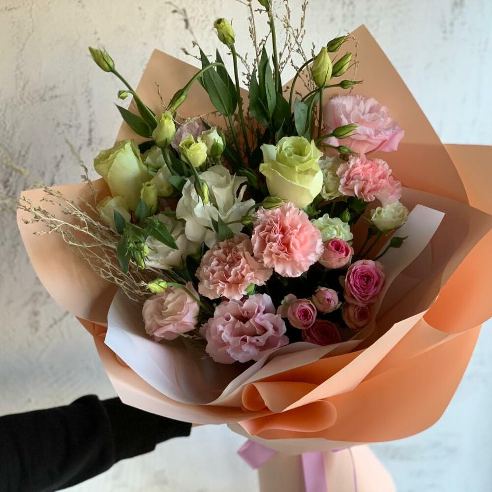 Гвоздики, Кустовые розы, Лизиантусы, Пионовидные розы, Розы