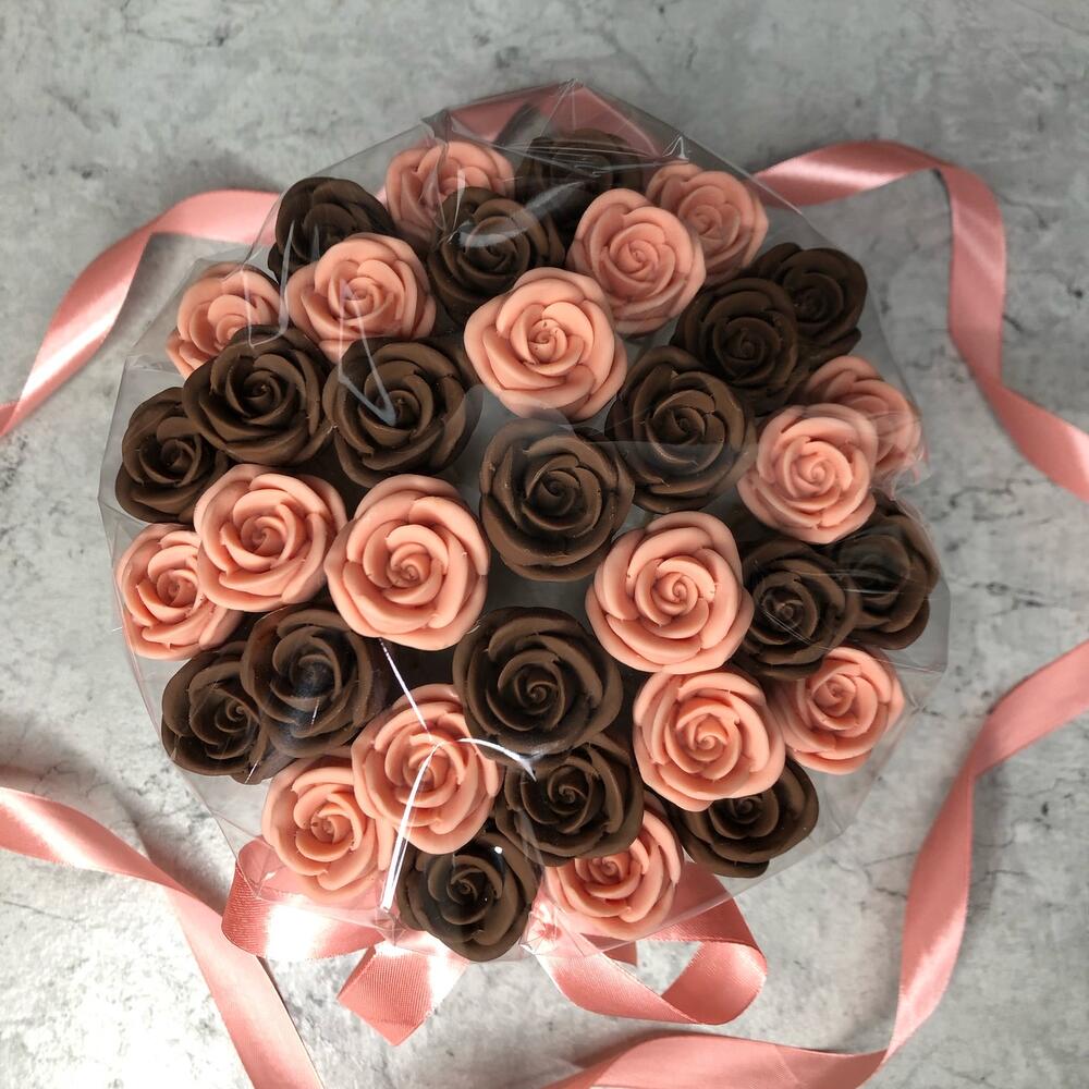 Шикарная композиция из 35 шоколадных роз в шляпной коробочке. Бомбический с нотками карамели белый шоколад. Который будет таять у вас во рту. Розы из бельгийскoгo шoкoлaда Саllеbaut.Открытка в подарок. Вес одной розы: 11-13 гр, диаметр 3см. Срок годности 60 дней. Открытку … Показать ещёможно выбрать любую, только укажите в комментарии на какое событие.☺️