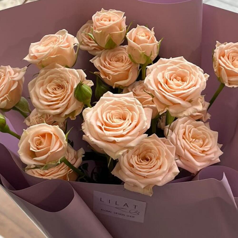 Кремовая кустовая роза – 7 шт. Упаковка дизайнерская – 1 шт. Открыточка с вашими пожеланиями – 1 шт. инструкция по уходу за цветами – 1 шт.