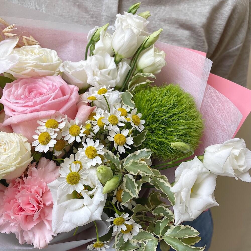 Категорий: Гвоздики, Кустовые розы, Лизиантусы, Розы, Ромашки, Тюльпаны