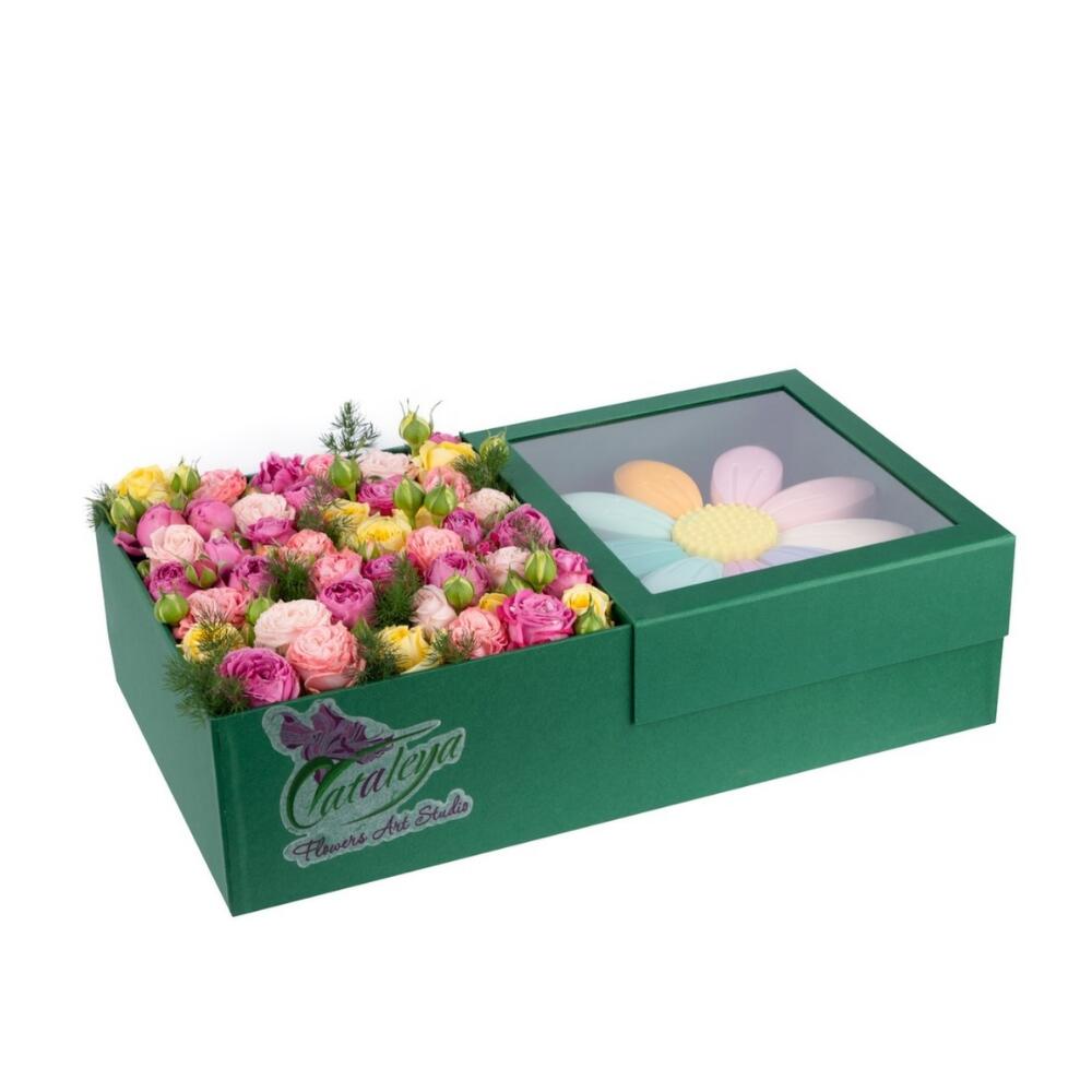 кустовые розы – 15 шт. торт желе – 1 шт.