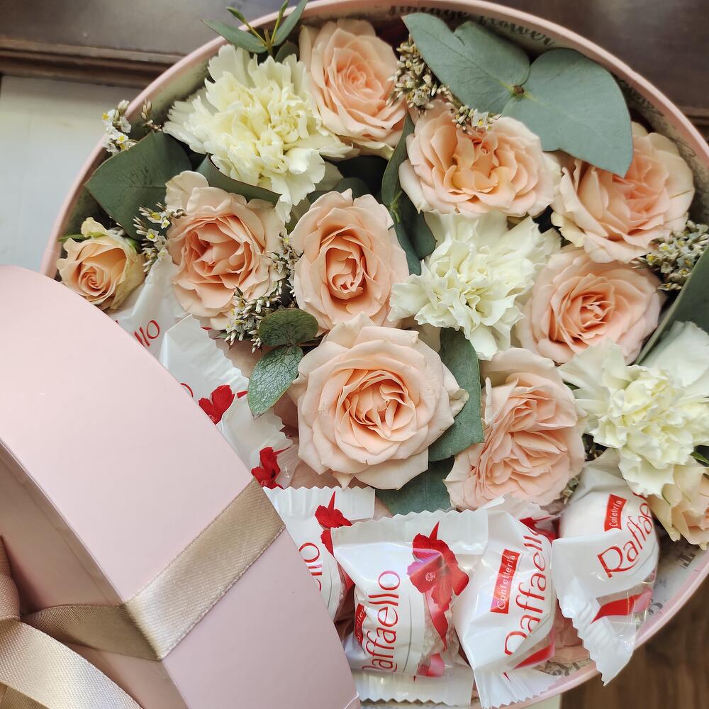 Коробка с цветами и сладостями "Зефир"