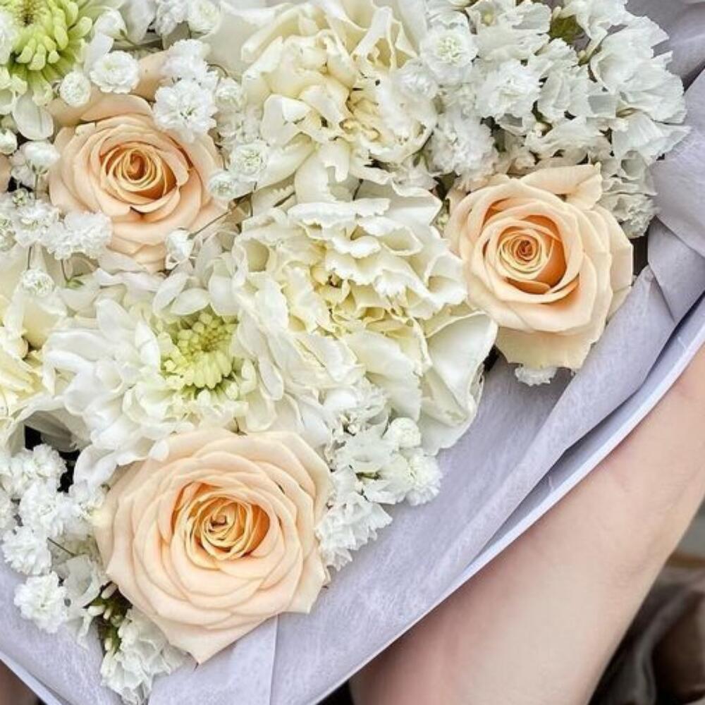 Категорий: Гвоздики, Гипсофила, Кустовые розы, Розы, Хризантемы