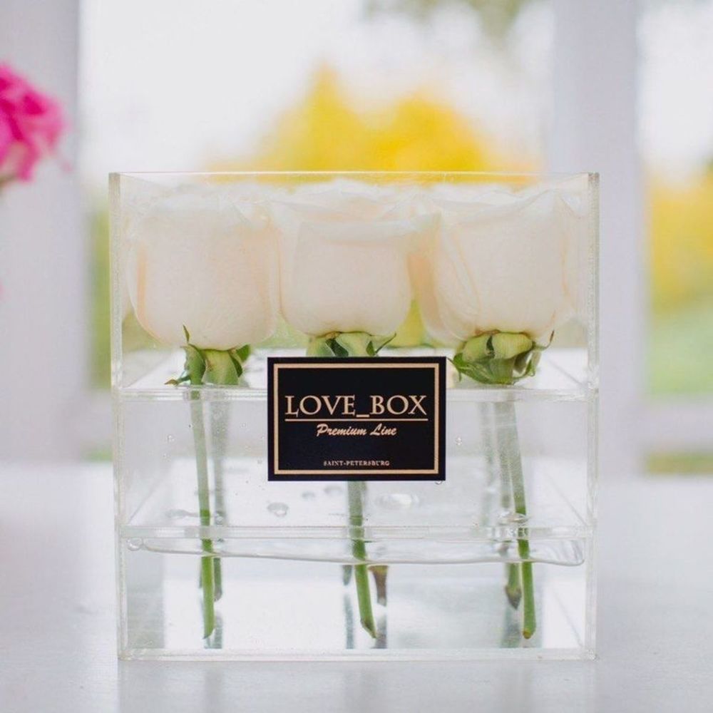 Кремовые розы в стеклянном кубе Standard