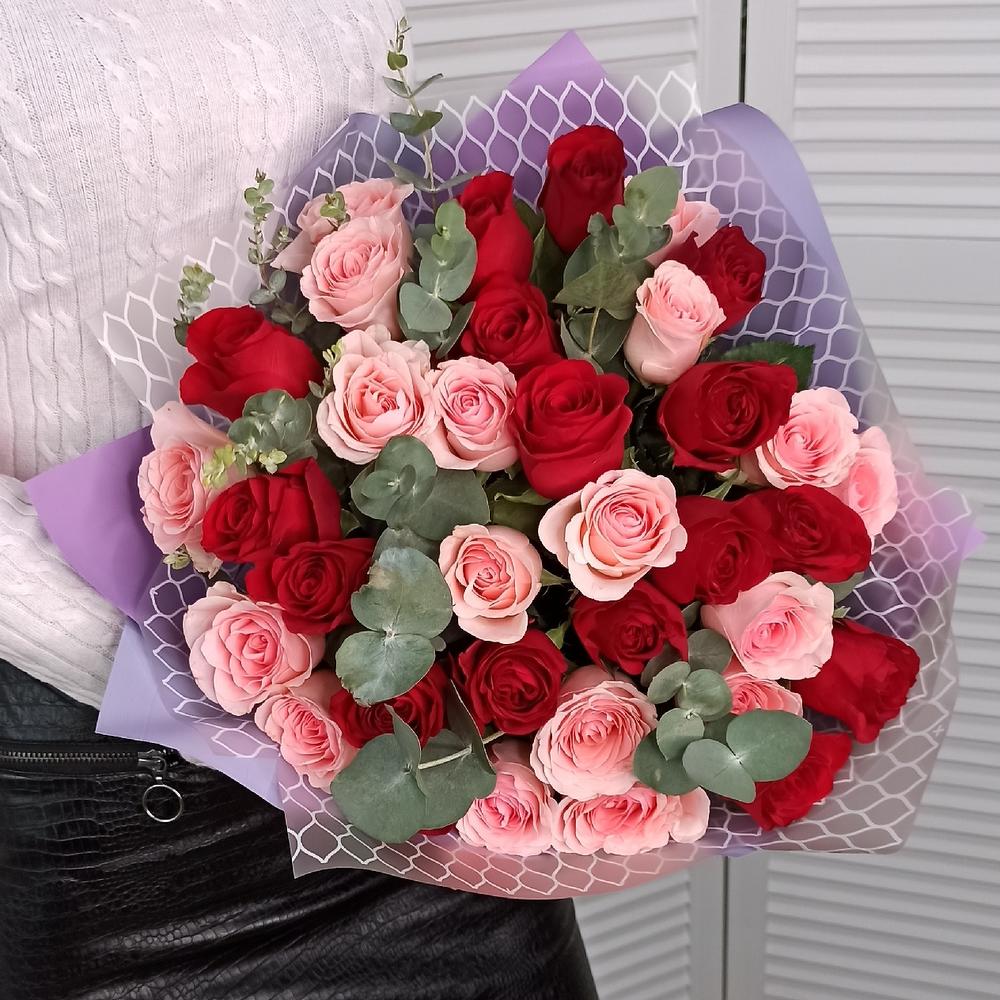 Роза Эквадор – 35 шт.Эвкалипт Baby Blue – 5 шт.Крафт упаковка – 3 шт.