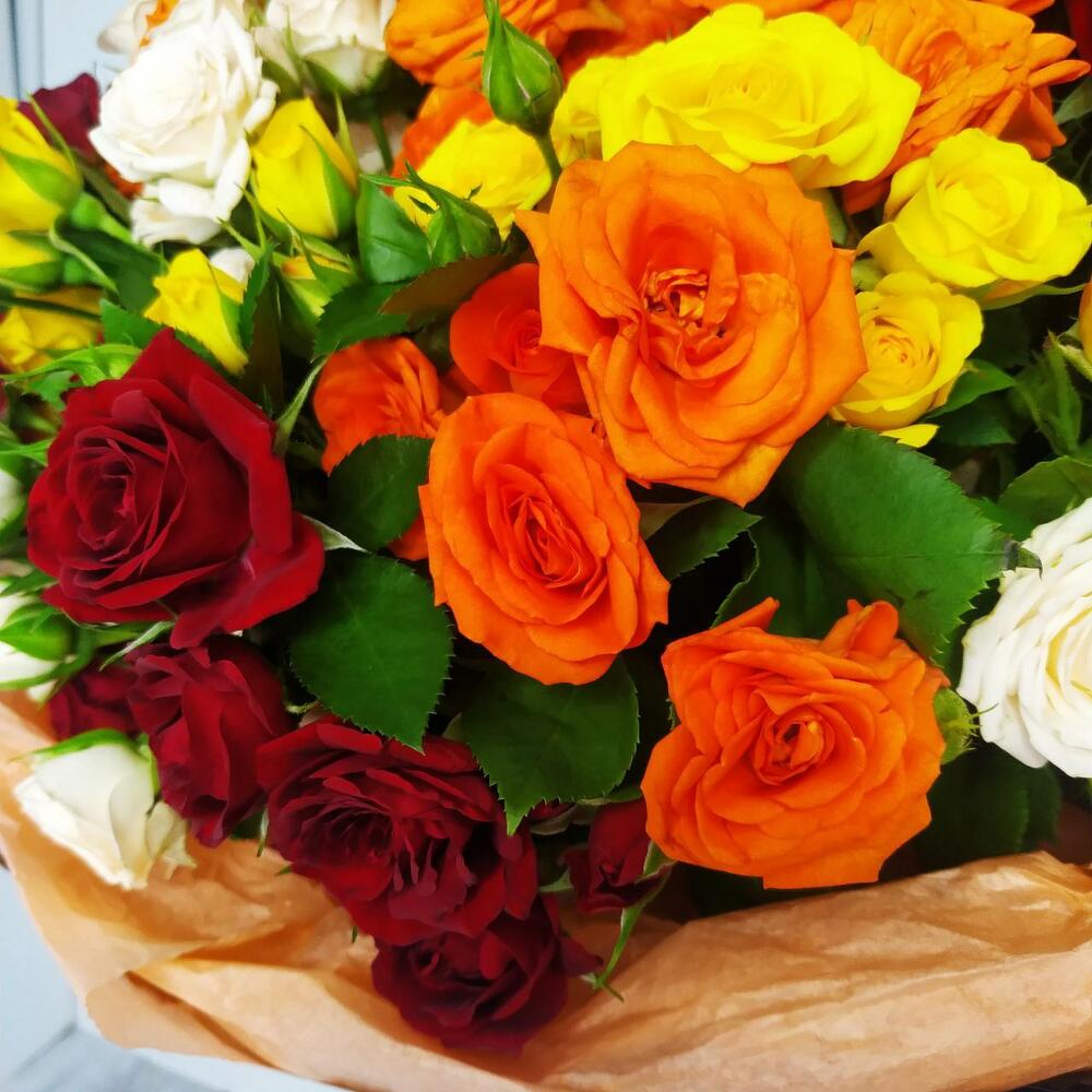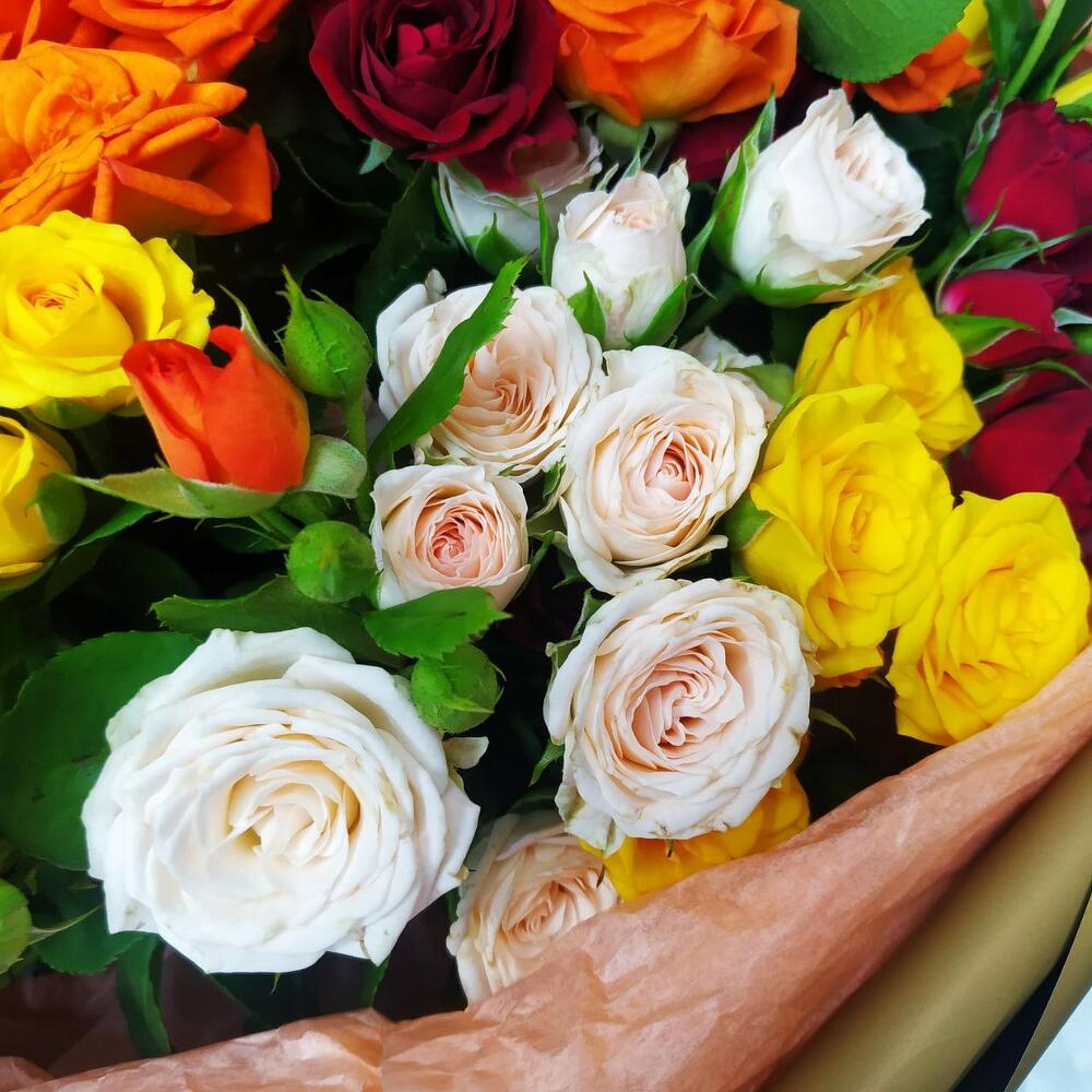Монобукет из кустовой розы микс 39 шт