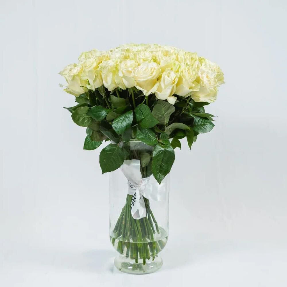 роза mondial 60 см – 51 шт.Пленка прозрачная – 1 шт.Лента атласная – 1 шт.