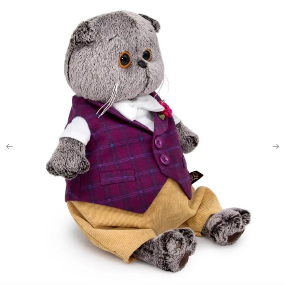 Мягкая игрушка в коробке Кот Басик в бордовом жилете с розочкой 19см (сидя)