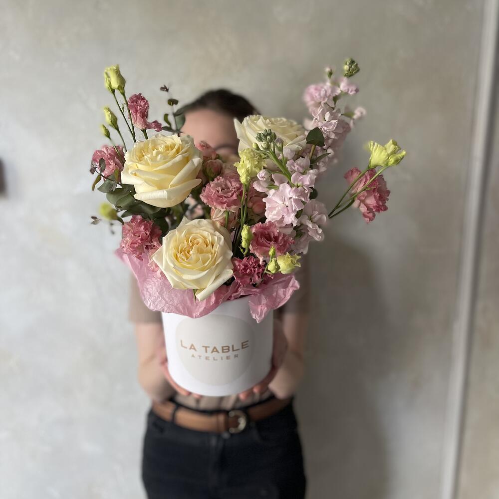 “В твоих глазах”: нежная шляпная коробка с французскими розами