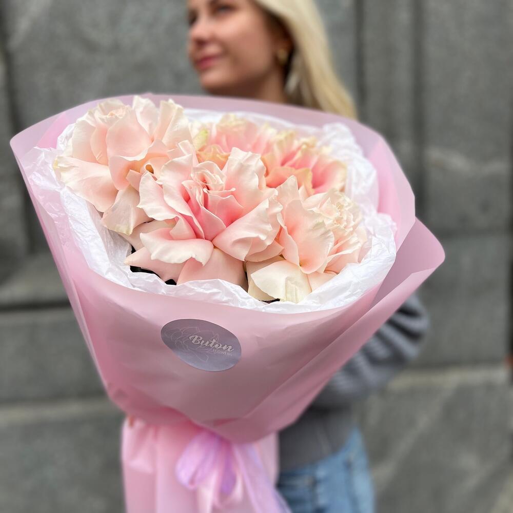 Лента атласная – 1 шт.Упаковка дизайнерская – 1 шт.Роза французская – 5 шт.