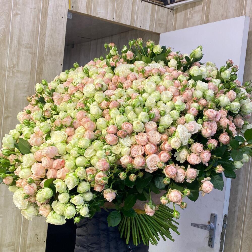 Роза бомбастик – 101 шт. Открыточка с вашими пожеланиями – 1 шт. доставка – 1 шт.