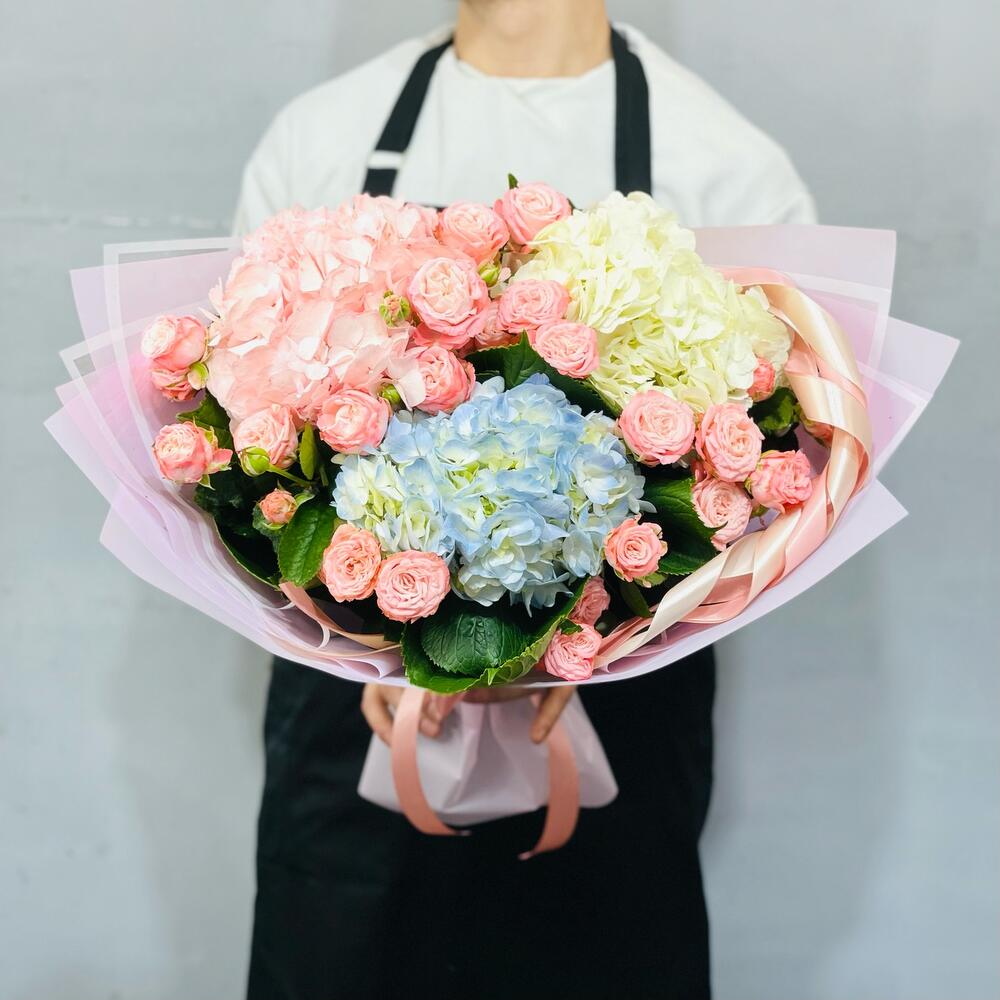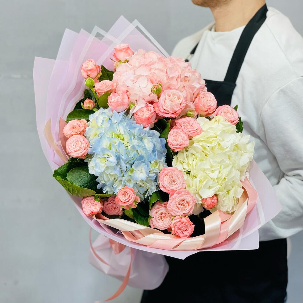 Категории: Гортензии, Кустовые розы, Пионовидные розы, Розы
