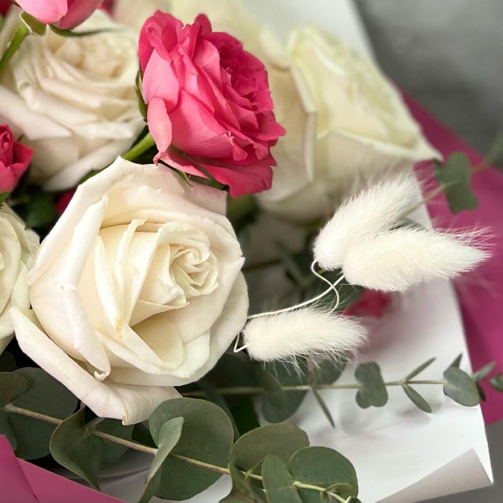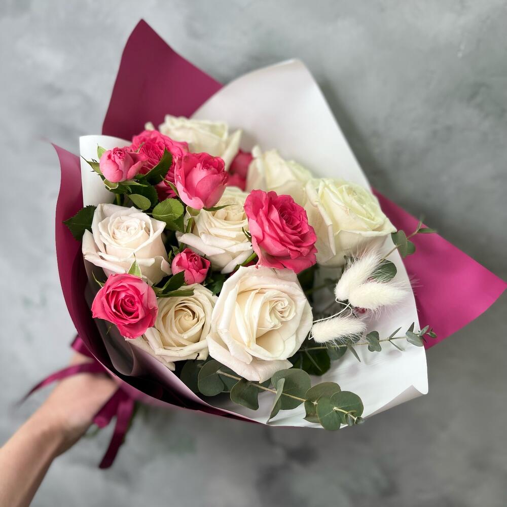 Букет французских роз с эвкалиптом