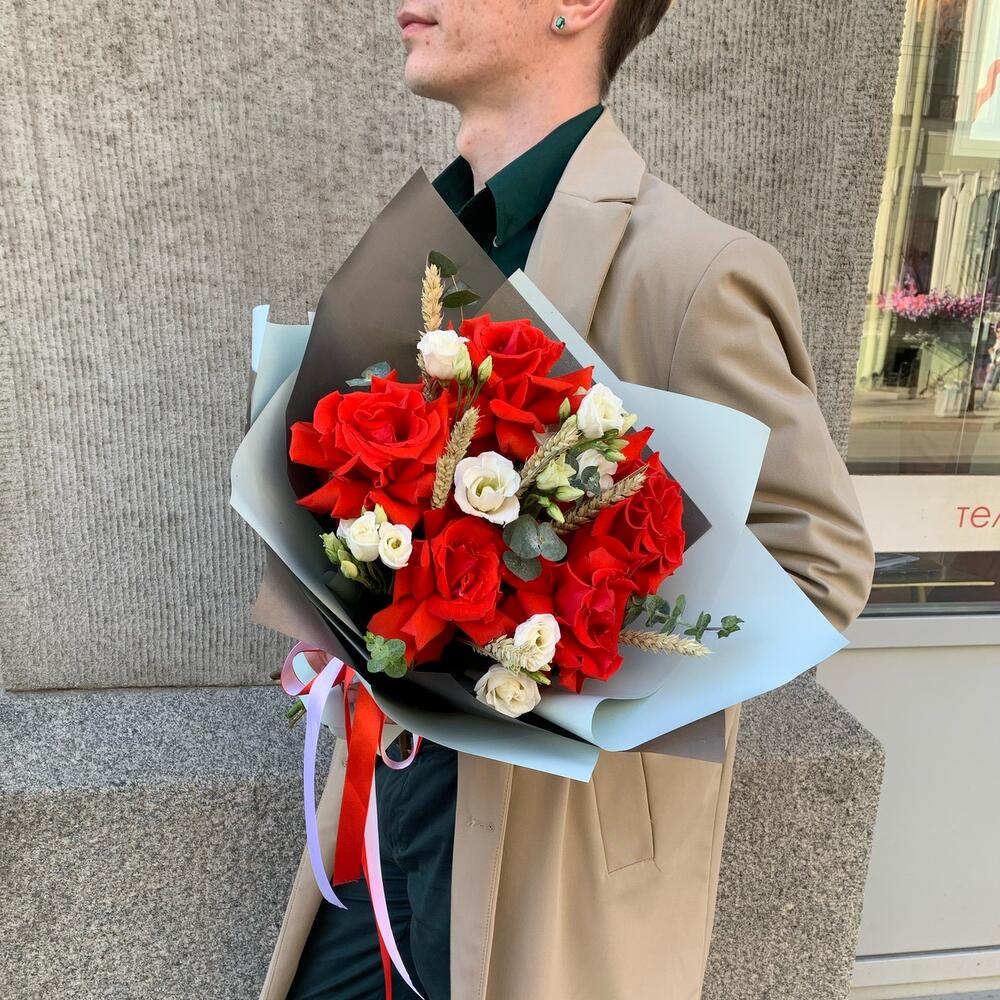 ПРИТЯЖЕНИЕ – это букет, который создан, чтобы очаровать и покорить сердце вашего избранника или избранницы. Французские розы – это цветы страсти и любви, которые выражают ваше сильное чувство. Эустома – это цветы нежности и грации, которые подчеркивают вашу изысканность и вкус. Пшеница – это символ плодородия и изобилия, который желает вашему партнеру счастья и процветания. Этот букет – идеальный подарок для романтического свидания или годовщины отношений.Чтобы цветы в вазе радовали вас дольше, мы подарим вам специальное средство, которое надо будет добавить в вазу с холодной водой. Не забудьте подрезать цветы каждые 2 дня и менять воду – это тоже продлевает им жизнь.