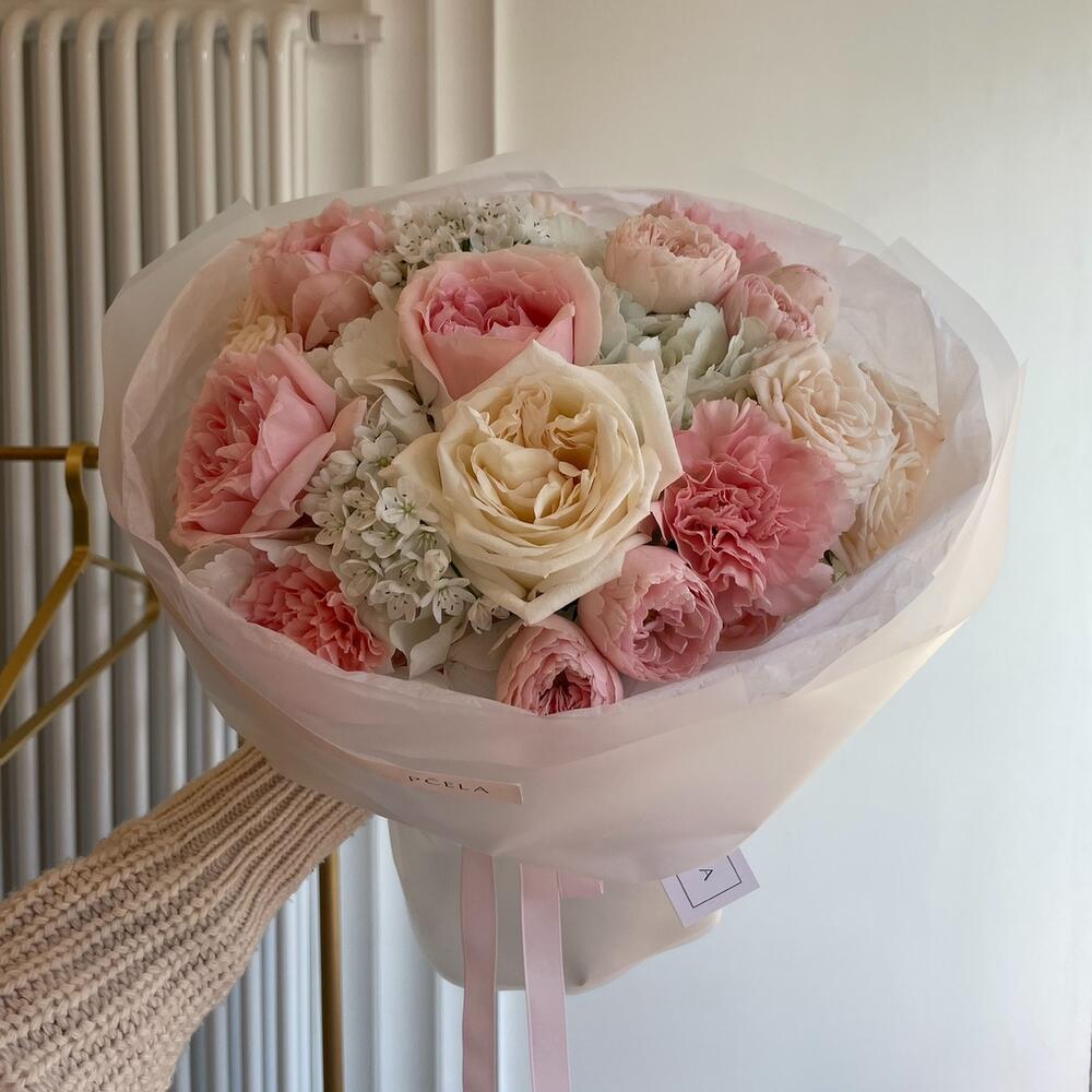 Букет из гортензии ,пиона ,тюльпана ,французская роза