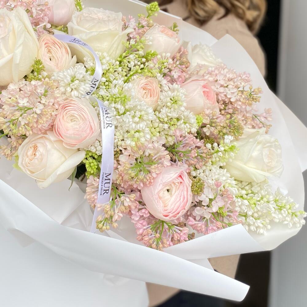 Премиальный состав, самый желанный букет, ОНА будет в восторге Роскошная сирень и пионовидная роза заполнят пространство своим цветочным ароматом , а ранункулюсы будут завораживать своим постепенным раскрытием лепесток за лепестком ♀️