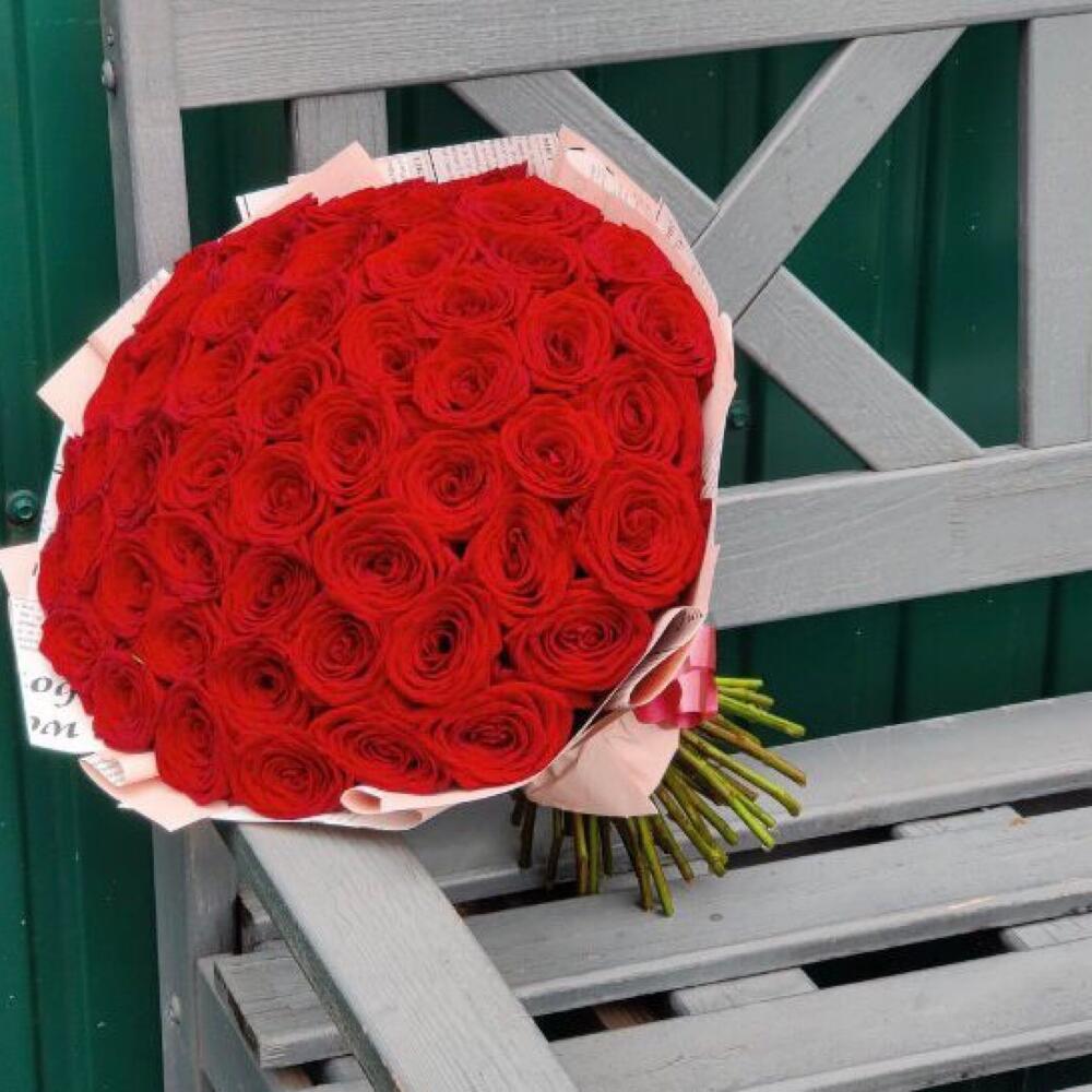 розы 51 штука красные – 51 шт.Упаковка дизайнерская – 2 шт.Лента атласная – 1 шт.