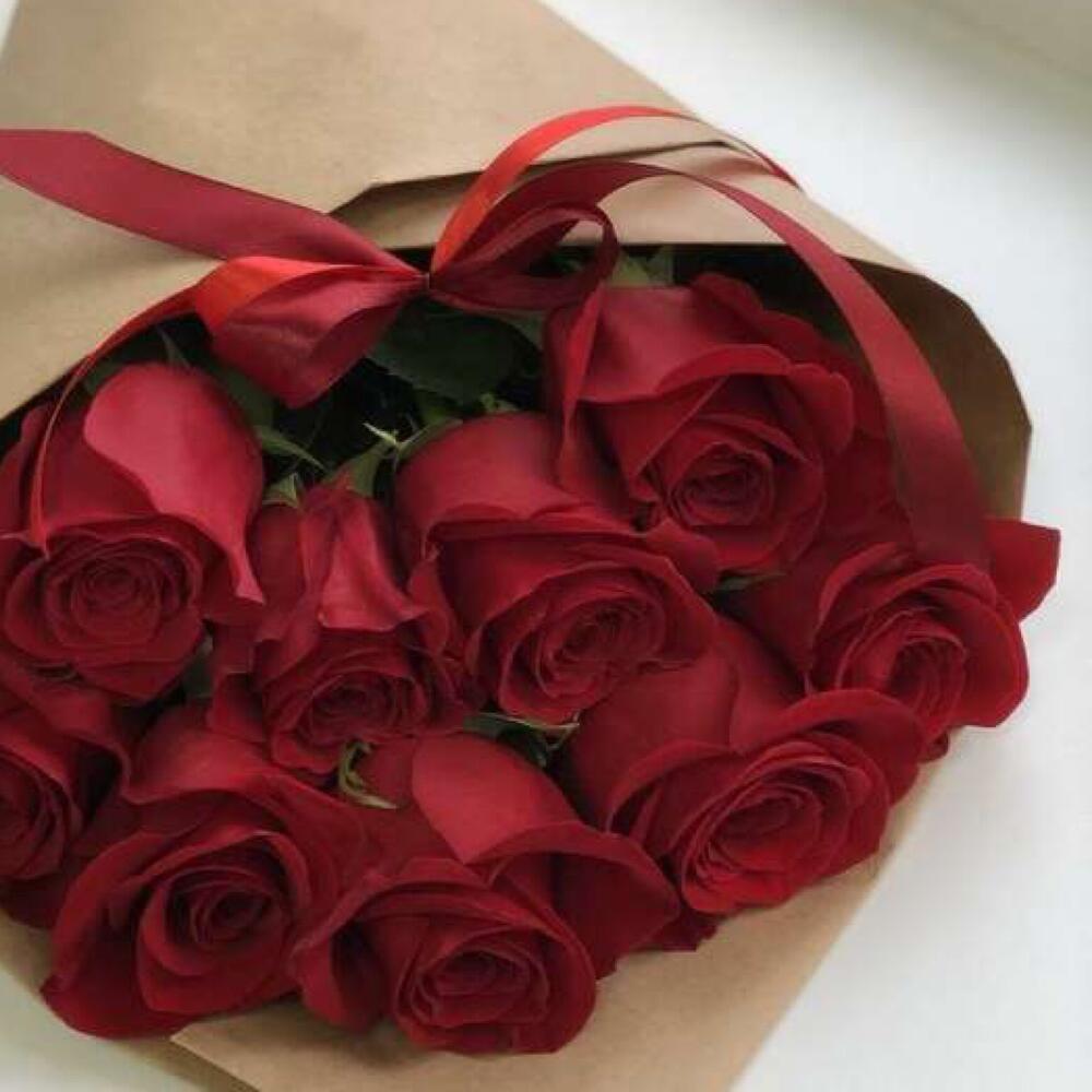 розы эквадор (60 см) – 9 шт.Лента – 1 шт.Крафт – 1 шт.